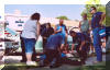 (August 2004) Old Settlers Day MES personnel help a fall victim. MES personnel standby at the parade & get visited by the Keystone Cops!