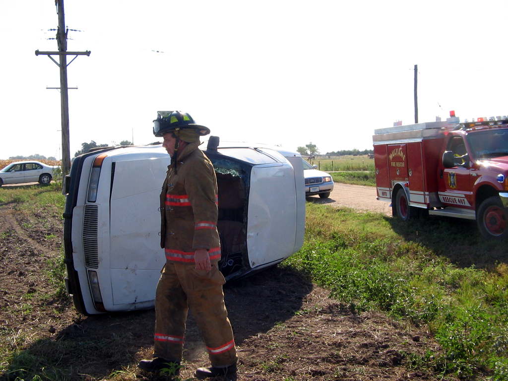 Mutual Aid House Fire This was an early morning Mutual Aid call to Cowley County Fire Dist. #4 on May 27th, 2006. Units from Rose Hill & Douglas in Butler County were also requested. MVA on KTA A 1998 Isuzu pickup operated by a 21-year-old male left the turnpike and crashed into a tree shortly before 10:30 a.m., 9-13-05. The driver was airlifted via Eagle Med helicopter to Via Christi-St. Francis, Wichita. It took 20 minutes to extricate the driver from the vehicle. He was transported in critical condition with multiple serious injuries.