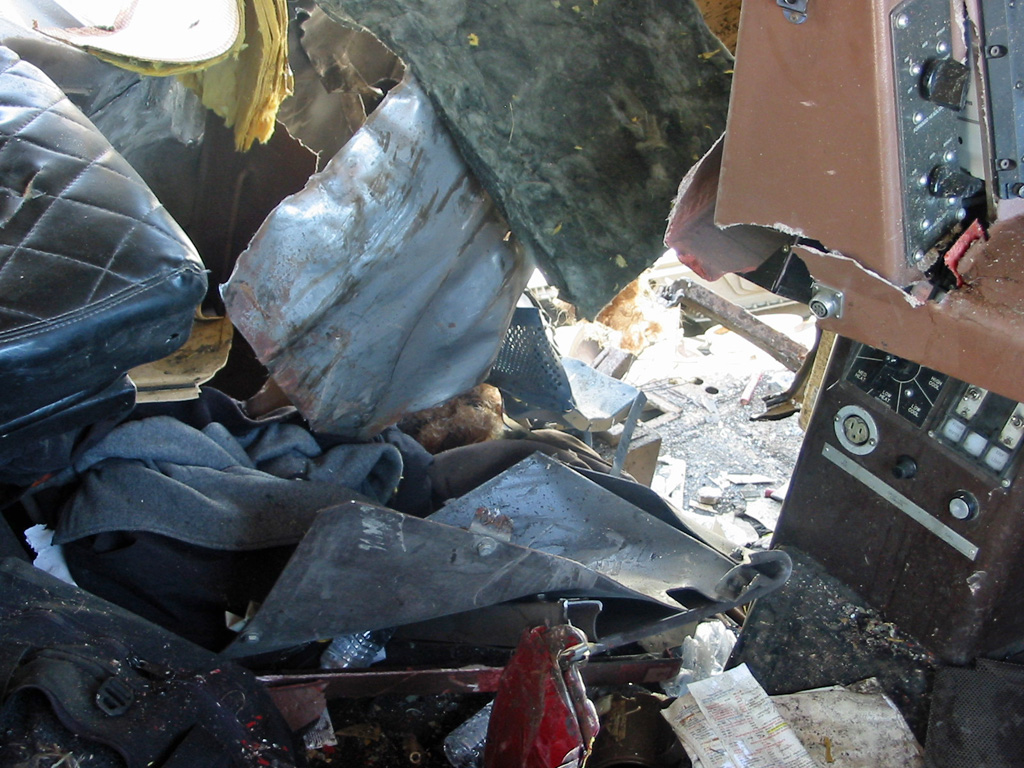 Two Train Crash, December 17th, 2007, 10:00 hours. Northbound Union Pacific failed to stop for a southbound BNSF train that was switching tracks. Nine cars were derailed with the locomotive, six were overturned. Removing the Engineer from the UP locomotive proved to be a challenge. Inside of the UP Locomotive, conductors seat is visible in the two left photos. Extensive damage to the engineer's area.