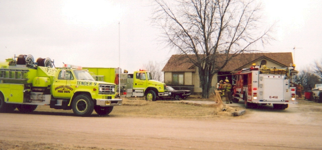 House Fire 640 E. Main, 9 a.m. September 21st, 2002. Probably caused by a candle in the living room. Good knockdown and stop, but extensive heat & smoke damage. One occupant received minor burns. This call was less than one block from our new station and most of the firemen had to drive by the fire to get to the station.