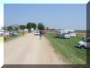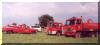 September 4th, 2002 A Sumner County motor grader operator who was working a county road was struck and killed when he apparently backed into a Rail Road crossing in front of an oncoming B.N.S.F. train. Two B.N.S.F. train crew members were treated and released at the scene. Capt. Duane Brill and Chief Judi Patterson at the back of the rehab ambulance Five locomotives and 7 rail cars were derailed. Five railcars were empty grain hoppers and three were empty tank cars. The tank cars posed a possible threat because they contained vapors of a previous flammable liquid, with a flash point of 100 degrees. B.N.S.F. officials requested we remain onscene until the locomotives and tank cars were up righted. The locomotive had just fueled and was carrying 2,300 gallons of Diesel fuel. The lead locomotive was laid over on it's side and had ruptured a 4" overflow line. Several attempts were make to plug the leak with no success. The City of Udall assisted with a load of sand to temporarily dyke the fuel until a private contractor with a dozer was brought in to build a dirt berm in the ditch. The lead locomotives exterior was also covered in Diesel fuel from the impact with the motor grader. The motor grader had a plastic fuel tank, which had just been filled. The diesel fuel tank was almost dead center at the point of impact. We were very lucky that the locomotive did not catch fire upon impact. A grass fire did result at the point of impact and was quickly extinguished by Cowley County Fire Dist. #4 from Udall, who was called for Mutual Aid. Due to the extended scene time and temperatures soaring into the upper 90's, our command bus was set up along with an ambulance to provide an Incident Command post and rehab for the workers. No injuries to the cleanup crews were reported during the 13 hour long incident.