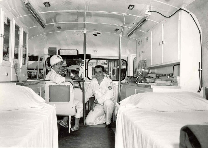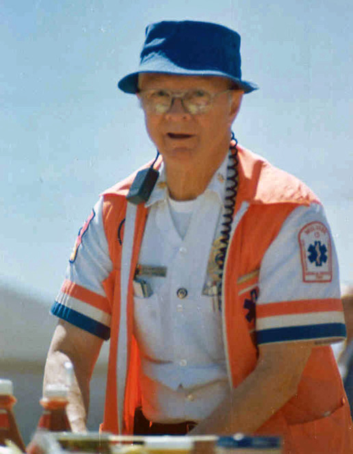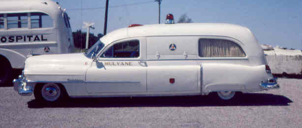 Mulvane (Volunteer) Ambulance Service 1969 - Today The first hospital was build in Mulvane by Santa Fe Railroad in 1913. It was equipped with sixty beds, emergency and surgical rooms. It was staffed by 3 surgeons and an M.D. along with 15 support persons. Santa Fe had the first ambulance in Mulvane which was horse drawn. They would go 4 blocks down to the depot to pick up the sick & injured from trains and transport them to the hospital. Most all of Mulvane Ambulance service was provided by private business until 1970. Namely Santa Fe Hospital and then by Mortuary services. Mulvane Civil Defense started making ambulance calls in 1961. A total of 336 calls were made by the Mulvane C.D. from 1961 till December 25th, 1969. These calls were in addition to the calls made by the Mulvane Mortuary Service. It was decided that the Mulvane Civil Defense would be the organization to take over this responsibility. New Year's Day morning 1970, the City of Mulvane ran it's first ambulance call at 11:58 am. The call was for a C.V.A. patient, Eugene Shoup. He was transported to his doctor in Augusta, and then to Wesley Medical Center in Wichita. (Information thanks to Martha Shoup Fleming, 2008) The first ambulance was a Civil Defense 1951 Cadillac. The City of Mulvane purchased it's first new Ambulance in August, 1970. It was a Ford van, purchased from the Dietz Co. in Wichita. The 1951 Cadillac was traded in 1969 for a 1953 Cadillac Ambulance. The 1953 Cadillac was traded in 1975 for a 1968 Buick. A new 1974 Horton Modular Ambulance was purchased from American Fire Equipment and was delivered in early 1975. The 1968 Buick was traded in 1979 for another 1974 Chevy Horton. In 1984 a 1969 Military 4x4 Ambulance was acquired from Military Surplus Property and was rebuilt. This unit was dubbed "Hawkeye 1". Hawkeye was unfortunately sold at Auction in December of 1987 From Jan. 1970 through Dec. 1976, Mulvane EMS ran 1,311 calls. By Dec. 1984 this number had risen to 4,140. In 1977 there were 12 state certified Emergency Medical Technicians - Ambulance (EMT-A). George E. Larsen is credited with founding the current Ambulance Service as we know it today. Mulvane #8, George Larsen, First Ambulance Director.